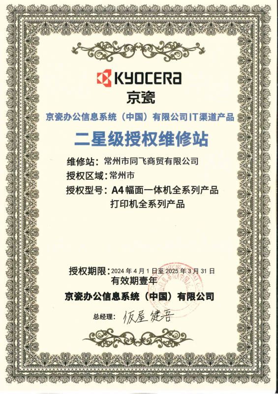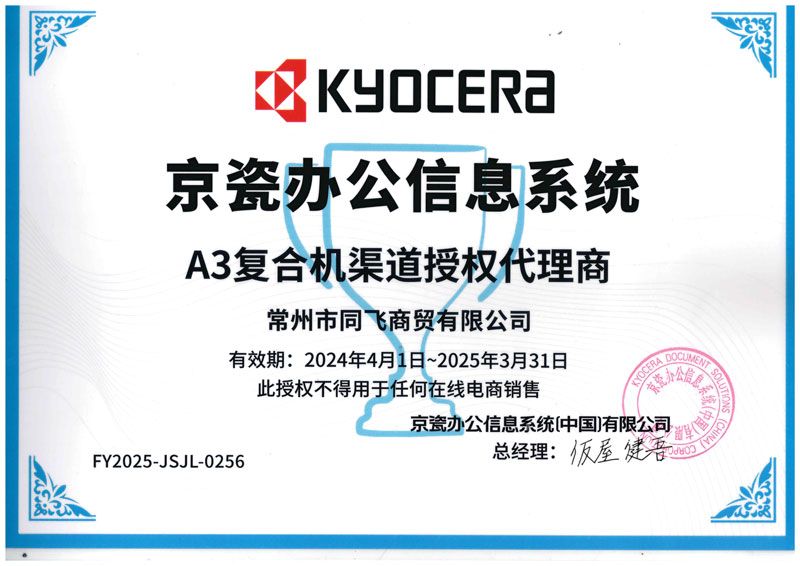 公司取得了日本京瓷復印機、打印機,映美針式打印機、天威耗材、安興紙業(yè)等眾多知名品牌常州地區代理權。